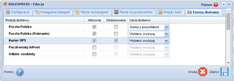 Below is a configuration view of delivery forms for products from a given wholesale: