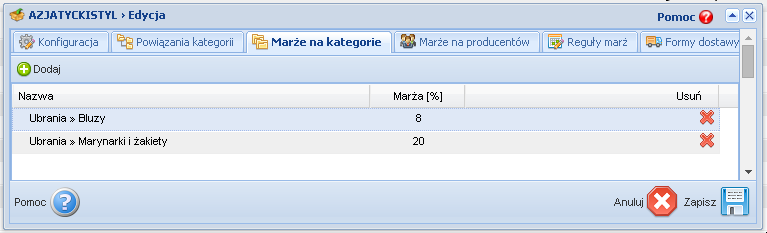 Below is a view of assigning markups for categories in the store for wholesale products: