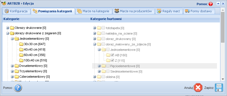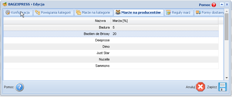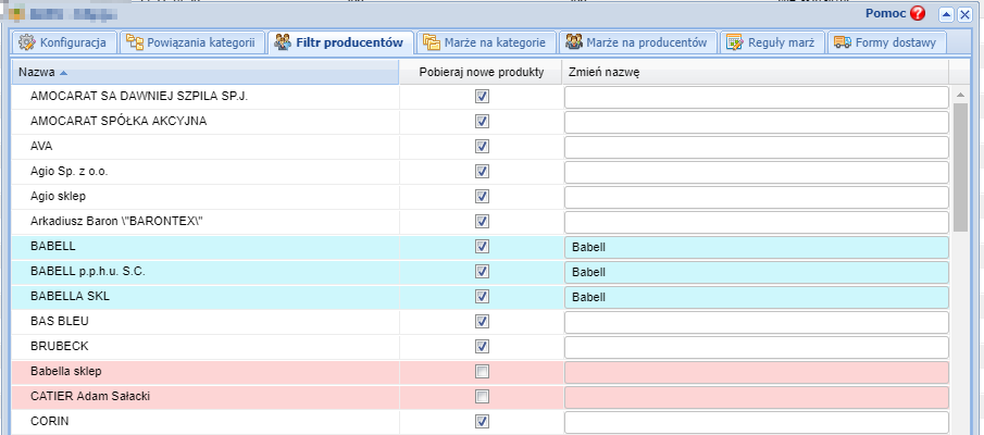 Below you can see the Producer filter where you decide which manufacturers to download and the possibility to map producer names in the event that they are duplicated in a wholesale.
